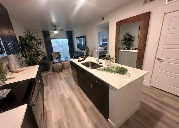 An equipped kitchen is appointed with oven and a dishwasher. Guests can reach Slate Scottsdale Apartment by car from Phoenix Sky Harbor International airport in 36 minutes. Guests can also enhance their experience by participating in ping pong and billiards.